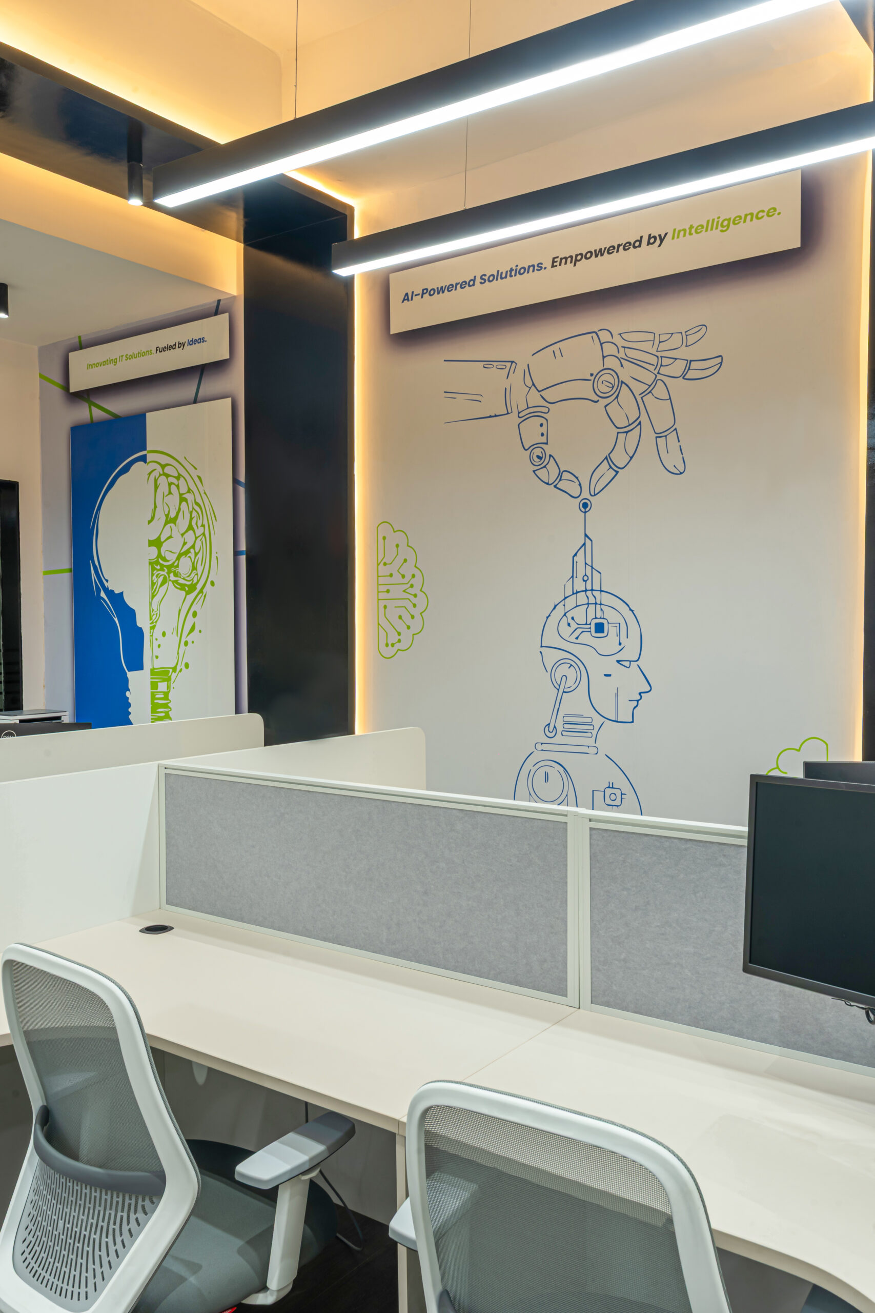 The project ultimately positions interior architecture as a medium of communication — where lighting, material transitions, and graphic articulation collectively construct a cohesive, performance-driven workspace.
